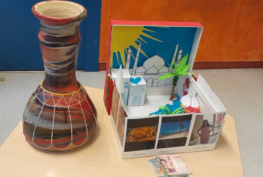 Im Ethikunterricht haben die Schülerinnen und Schüler der Klassen 5F1 und 5F3 einen Schuhkarton gestaltet und darin eine selbst ausgewählte Kultur präsentiert.