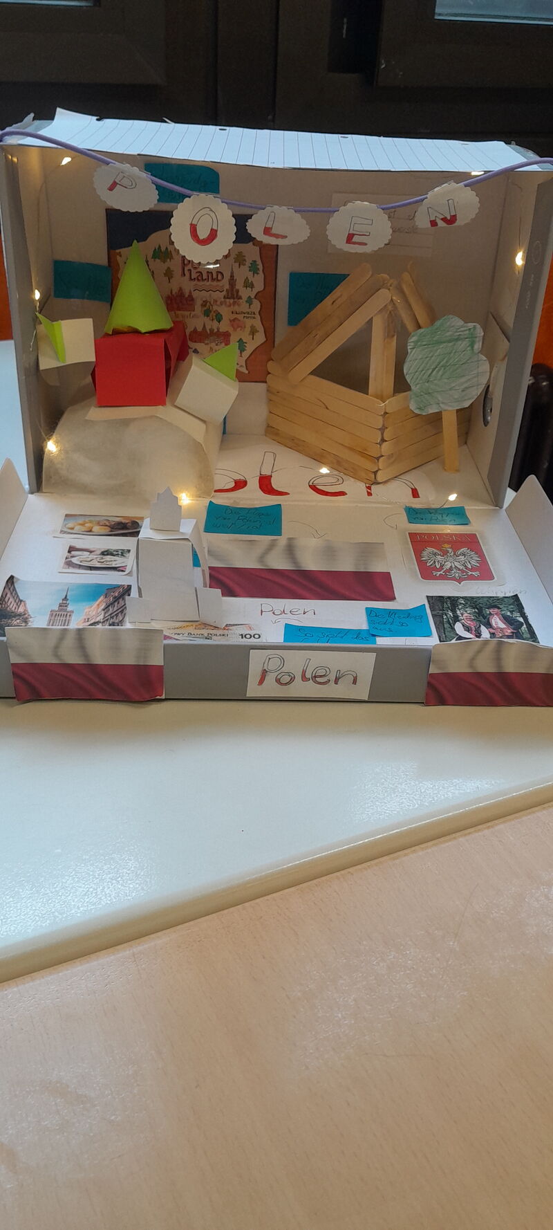 Im Ethikunterricht haben die Schülerinnen und Schüler der Klassen 5F1 und 5F3 einen Schuhkarton gestaltet und darin eine selbst ausgewählte Kultur präsentiert. Einige Kinder brachten kulturtypische Kleidung oder eine Spezialität mit. Eine Schülerin spielte ein Lied ab, zu dem andere Schülerinnen und Schüler tanzten. Außerdem wurde kurz mit einer Trommel getrommelt. So lernten alle viel über verschiedene Kulturen. Die Präsentation stand unter dem Motto „Wir sind bunt“ und zeigte die Vielfalt unserer Gemeinschaft.