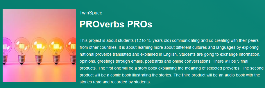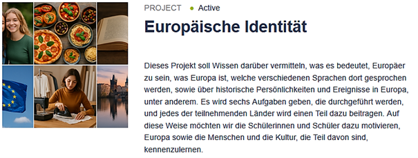 Ziel der Projekte ist internationale Kollaboration im virtuellen Raum im europäischen Kontext. Projekte sind fächerübergreifend angelegt und ermöglichen jahrgangs- und schulstufenübergreifende Kooperation. Die Themen der Projekte können vielfältig sein, stellen aber immer den Austausch, die Verständigung und die konstruktive Zusammenarbeit zwischen Teilnehmenden aus ganz Europa in den Mittelpunkt.