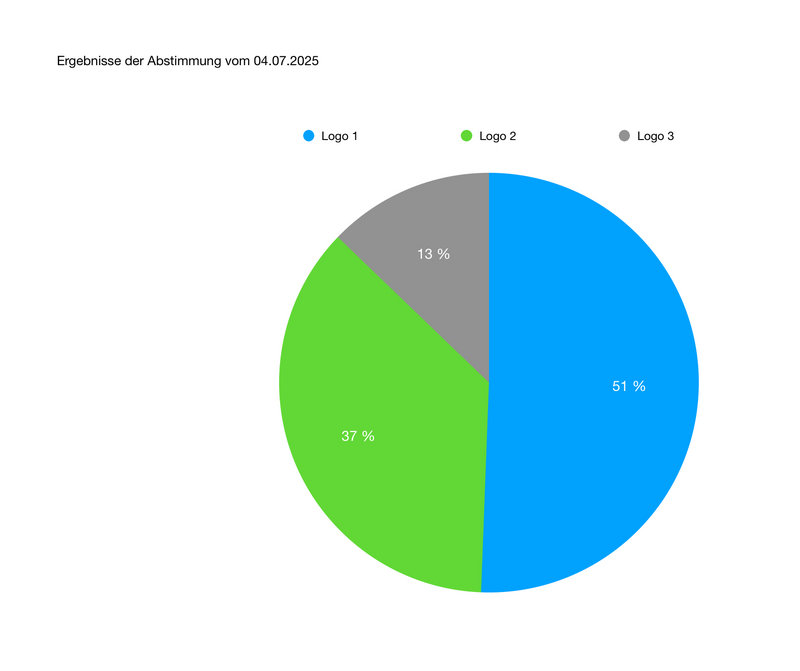 Die Logovariante 1 wurde mit deutlichem Vorsprung (Ergebnis: 50,58 %) vor den anderen Entwürfen gewählt. Dahinter folgten mit 36,63 % und 12,79 % die Varianten 2 und 3. (Siehe Tortendiagramm)
