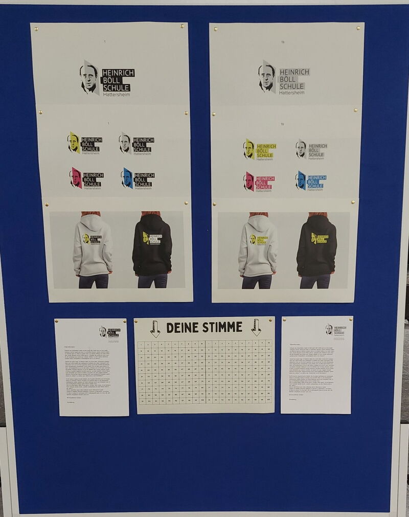 Alles begann mit einem Ideenwettbewerb, an dem 22 Schülerinnen und Schüler, zum Teil sogar mit mehreren Logoentwürfen, teilnahmen. Diese vielfältigen und kreativen Entwürfe werden gegenwärtig im Flur des Verwaltungstraktes ausgestellt.