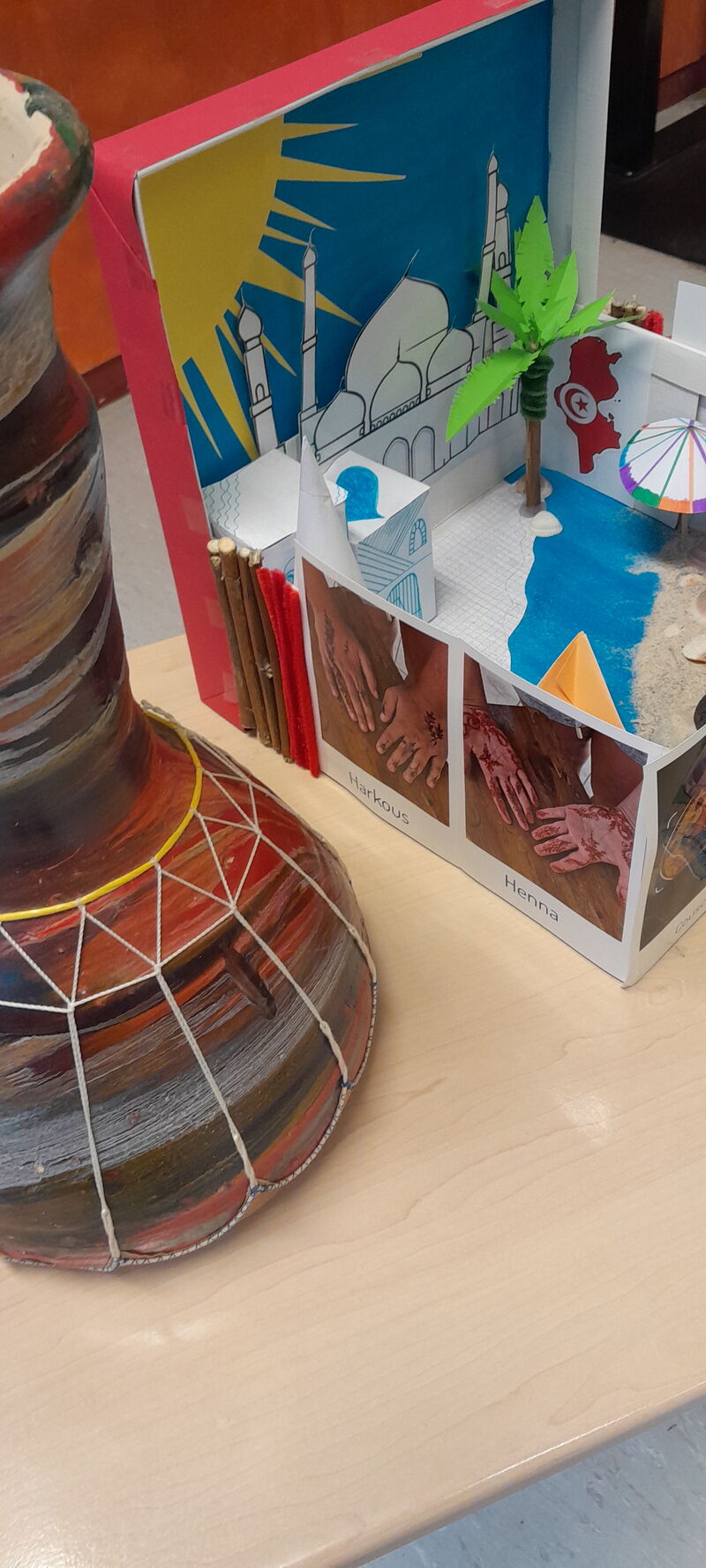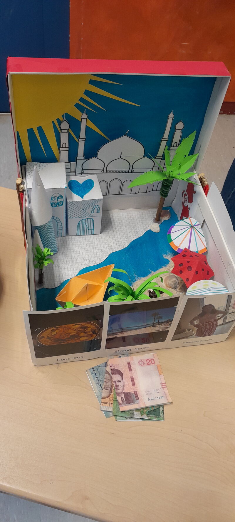 Im Ethikunterricht haben die Schülerinnen und Schüler der Klassen 5F1 und 5F3 einen Schuhkarton gestaltet und darin eine selbst ausgewählte Kultur präsentiert. Einige Kinder brachten kulturtypische Kleidung oder eine Spezialität mit. Eine Schülerin spielte ein Lied ab, zu dem andere Schülerinnen und Schüler tanzten. Außerdem wurde kurz mit einer Trommel getrommelt. So lernten alle viel über verschiedene Kulturen. Die Präsentation stand unter dem Motto „Wir sind bunt“ und zeigte die Vielfalt unserer Gemeinschaft.