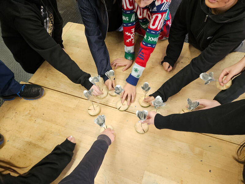 Ziel war es, verschiedene Arbeitsschritte in der Metallbearbeitung kennen zu lernen und als Produkt eine Tulpe oder Rose aus Metall herzustellen.