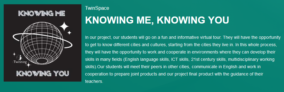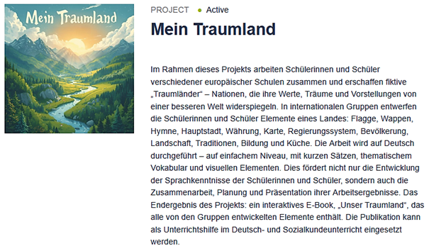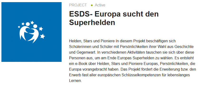 eTwinning ist die geschützte europäische Plattform für die Zusammenarbeit von Schulen, Lehrkräften und Lernenden. Im Rahmen von eTwinning arbeiten Lehrkräfte zusammen und organisieren Aktivitäten für ihre Schülerinnen und Schüler. Jedes Mitglied eines Projektes leistet seinen Beitrag.